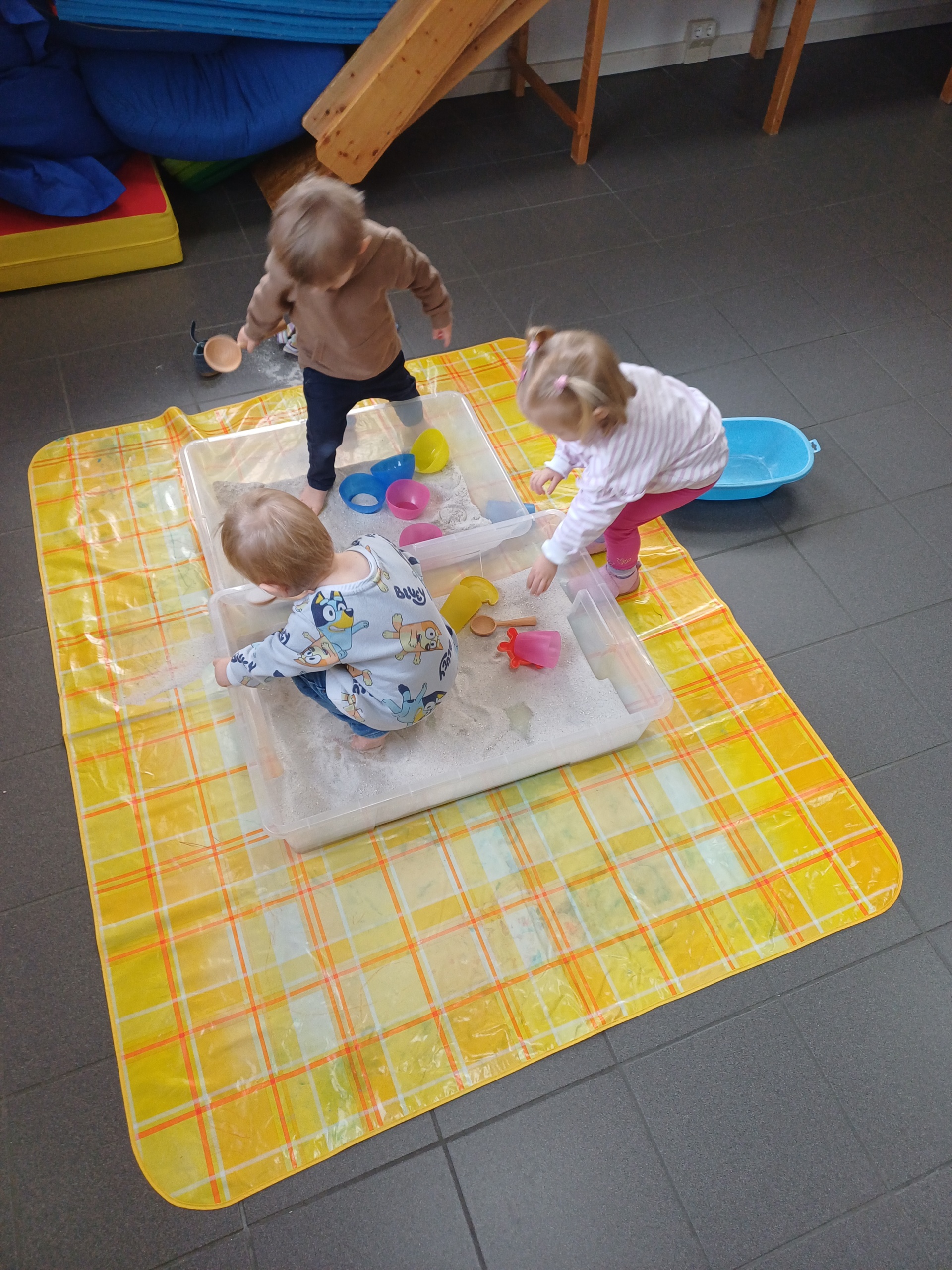 Unsere Kinder hatten die Möglichkeit Vogelsand mit allen Sinnen zu erforschen. Egal ob mit den Händen oder den Füßen, Bechern, Löffeln oder Förmchen, trocken oder feucht - alles war interessant.